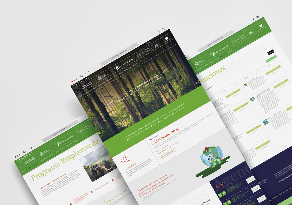 El reto: Unificar dos identidades visuales, la de la Fundación Biodiversidad y las directrices europeas, en un diseño coherente y atractivo. El mayor desafío era garantizar que, cumpliendo con las pautas formales, la web transmitiera cercanía y claridad desde el primer momento.