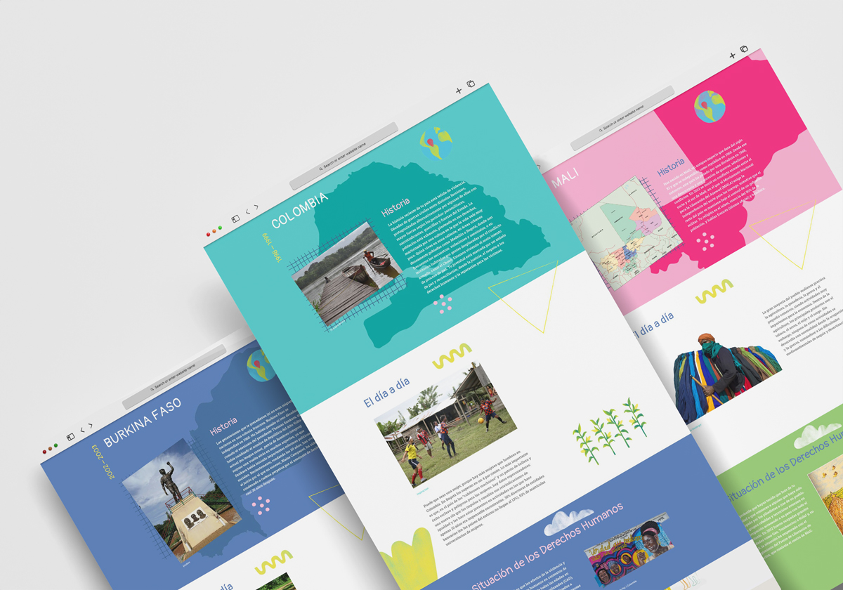 El enfoque: Desarrollé una interfaz interactiva donde el usuario, al introducir su fecha de nacimiento, activa «la máquina» y descubre cómo hubiera sido su vida en Mozambique o Bolivia. Combiné esta navegación experiencial con fichas informativas que contextualizan el trabajo de la cooperación mediante textos, fotografías y materiales audiovisuales, todo envuelto en las ilustraciones evocadoras de Emma Gascó.
