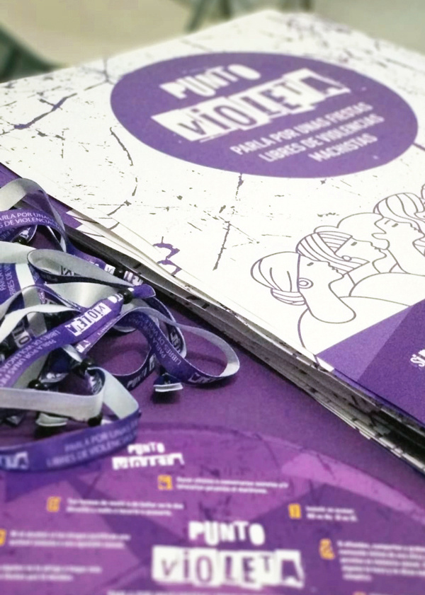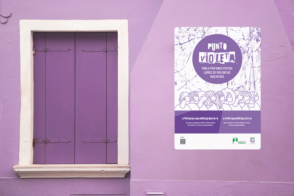 Desarrollo de la identidad visual para el Punto Violeta que se habilitó en las fiestas municipales de Parla de 2023 y 2024